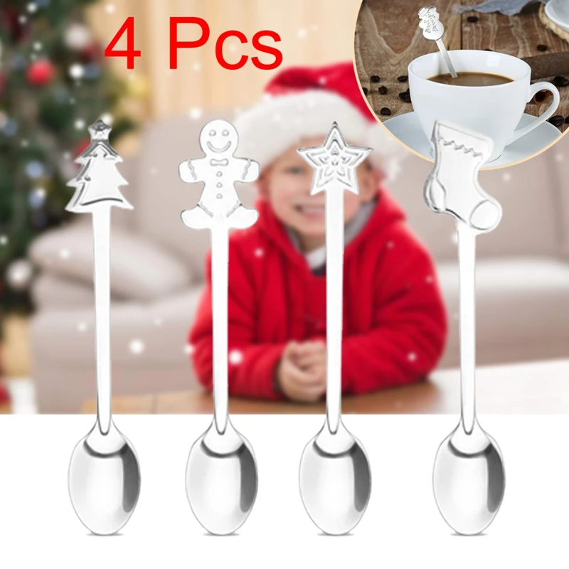 Buy 4PCS Christmas Stainless Steel Spoon Fashion Cartoon Coffee Spoon Life Home Kitchen Utensils and Ap | Handheld Shower Head Bathroom High Turbo Pressure Energy Water Saving Bath Showerhead